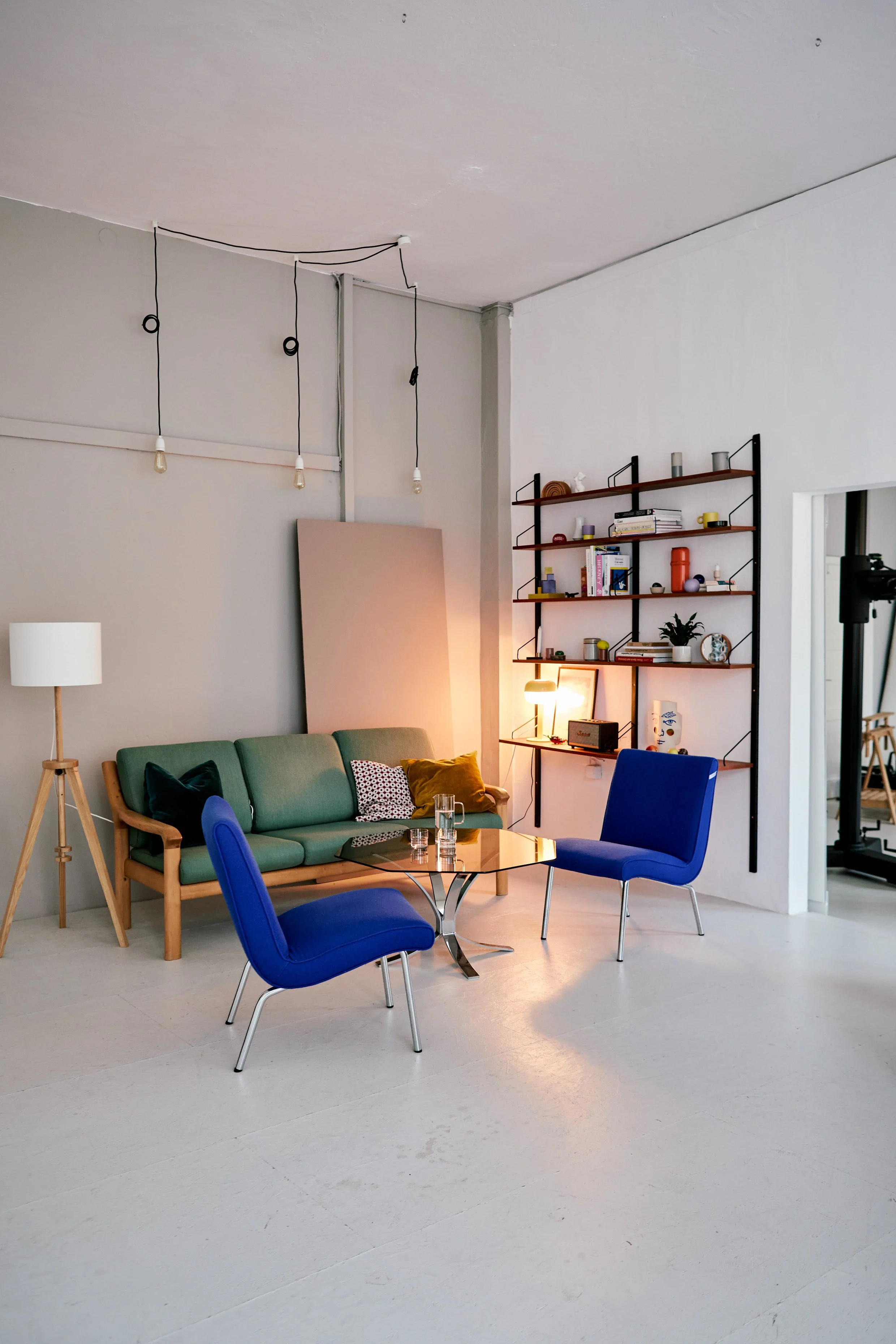 The first room is a light filled and fully equipped kitchen, ideal for lifestyle, food, or production shoots. The kitchen also offers a large wooden table that can easily seat 8 people.